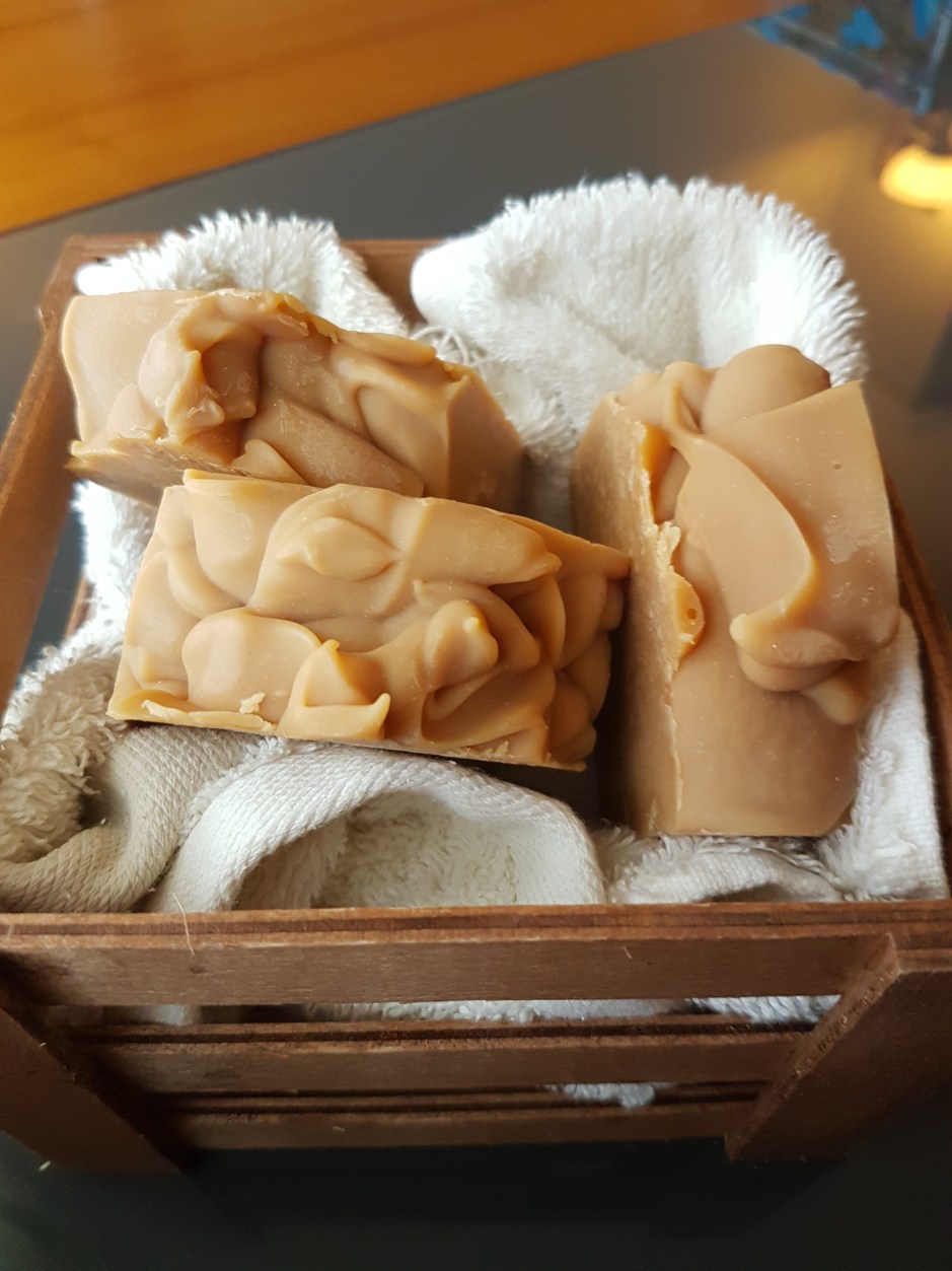 Me han salido unos jabones que más que jabones parecen bizcochos, de textura están genial, muchas burbujas y dejan la piel que parecen crema.